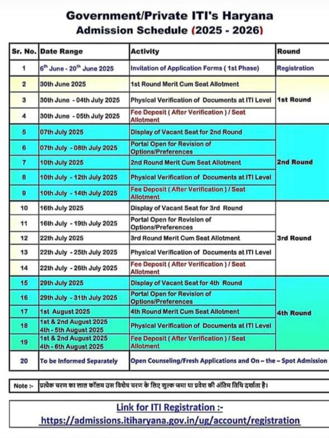 Counselling schedule for admission